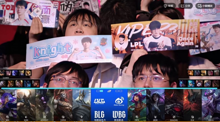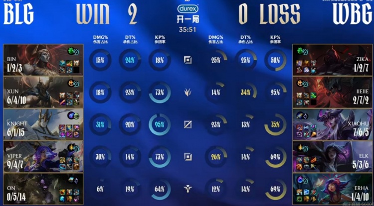 BLG:上单Bin、打野Xun、中单knight、下路Viper、辅助ON