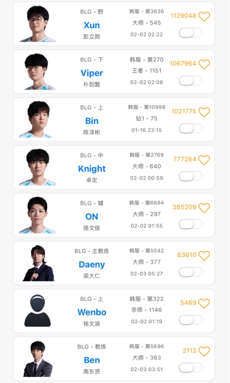 直播吧2月3日讯 根据韩服排位统计小程序显示,Bin已经连续18天未登上韩服打Rank,段位更是直接掉到了钻一。