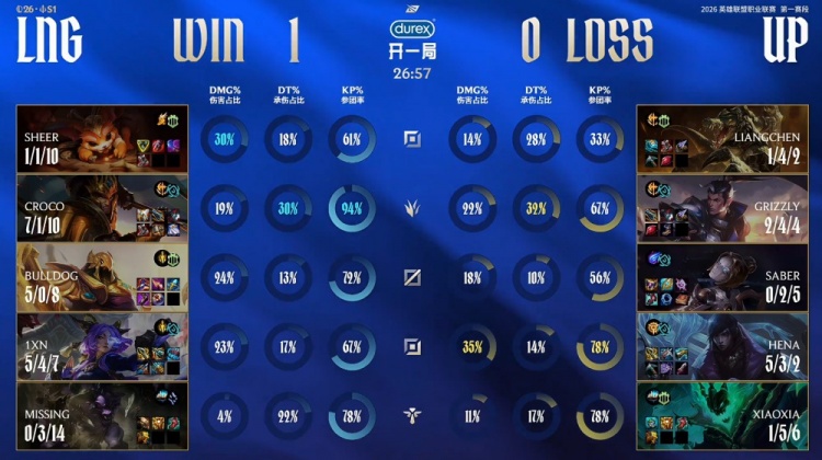 直播吧2月3日讯 2026LPL第一赛段组内赛继续进行,今日首场涅槃组比赛由LNG对阵UP!