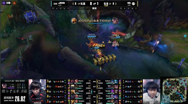 直播吧2月3日讯 2026LPL第一赛段组内赛继续进行,今日焦点之战由JDG对阵iG!