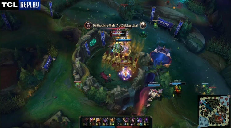 中期Jwei牛头先手开JDG两人,Photic芸阿娜爆轰三杀,iG2换4吃掉先锋,经济领先3k。野区团战Junjia潘森主动开Jwei牛头被后者顶飞,Phoitc芸阿娜超神,iG打出0换3吃掉大龙经济领先8k。