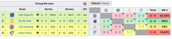 涅槃组后两名(LGD、UP)确定淘汰,无缘第一赛段后续赛程。