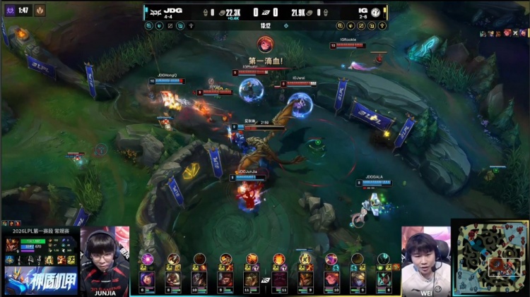 第一局:🎮Jwei牛牛冲锋顶飞Junjia Photic超神芸阿娜爆杀JDG iG赢首局
