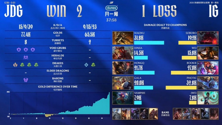 直播吧2月3日讯 2026LPL第一赛段组内赛继续进行,今日焦点之战由JDG对阵iG!