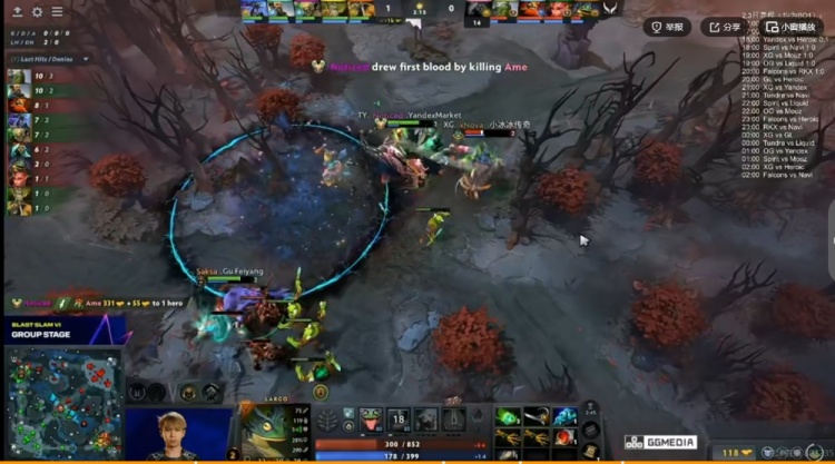 【2分钟】上路Noticed孽主贴脸火雨+框,配合Saksa小Y合力线杀掉了Ame奶绿!一血给到孽主!