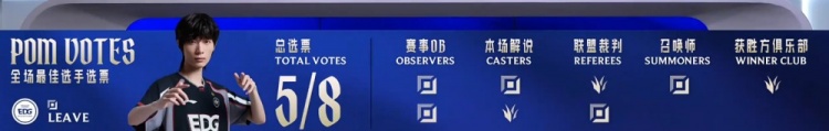 最终EDG推掉WE中下两路水晶,龙魂团Leave满血战至最终再轰三杀,EDG打出2换5团灭WE,一波推平WE基地拿到比赛胜利。