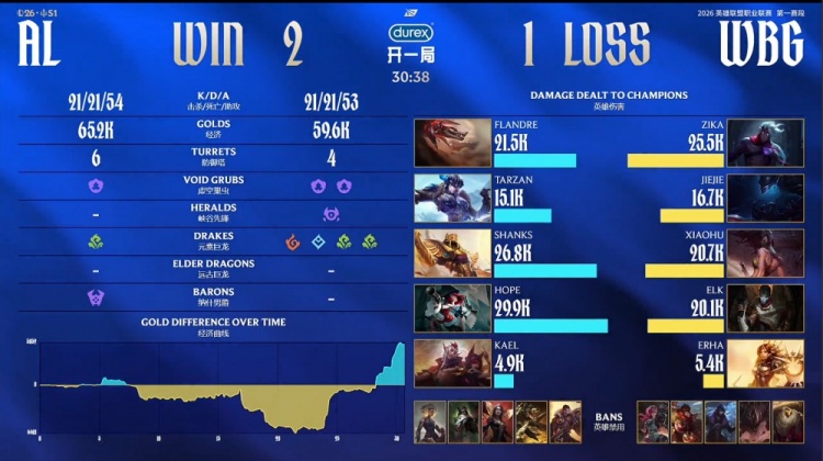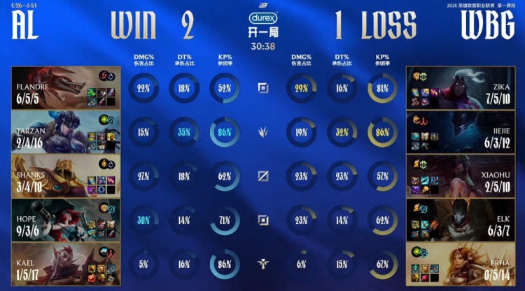 直播吧2月4日讯 2026LPL第一赛段组内赛继续进行,今日焦点之战AL让一追二战胜WBG!