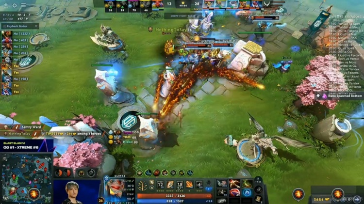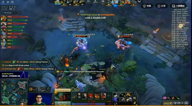 【40分钟】野区XG先手秒掉了skem发条,yopaj兽王直接贴脸吼了个XG这边最肉的船长啊!正面Nikko斧王根本扛不住小骷髅的一套爆发被秒!XG逐个击破,打出0换4之后OG敲出了GG!
