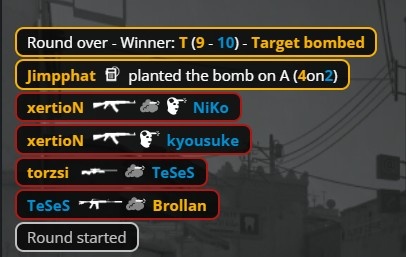 第二个加时赛第5回合,开场torzsi大狙穿掉中门K3,B点京介打掉Spinx,Niko中路击杀小吉米,xertion与Brollan进B下包,Niko回防打掉Brollan,torzsi大狙轰掉龙哥,xertion再杀Niko,MOUZ拿到第18分赛点。