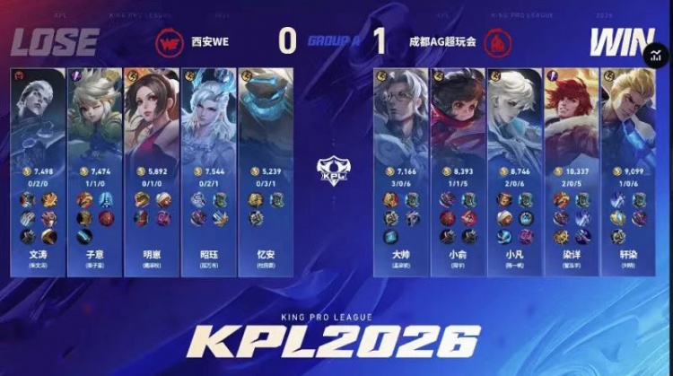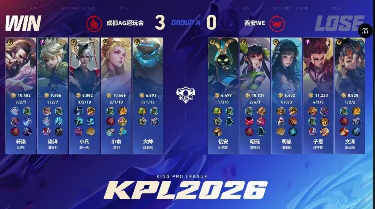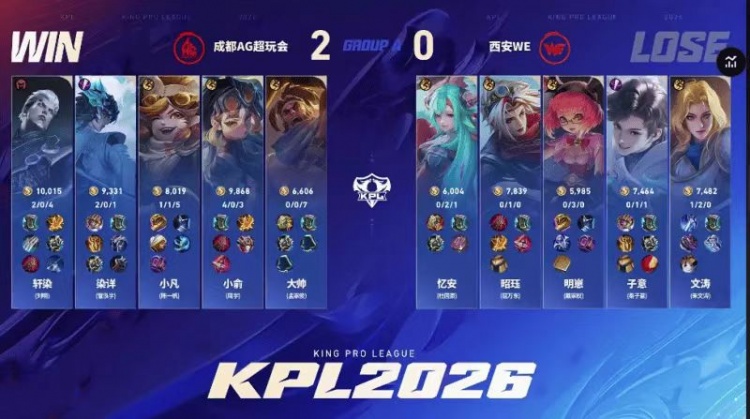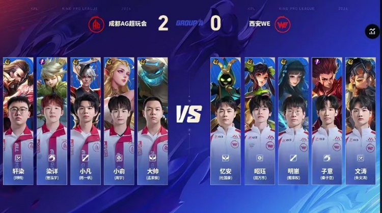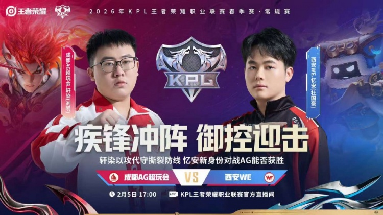 直播吧2月5日讯 2026KPL春季赛本场比赛是由成都AG超玩会对阵到西安WE!