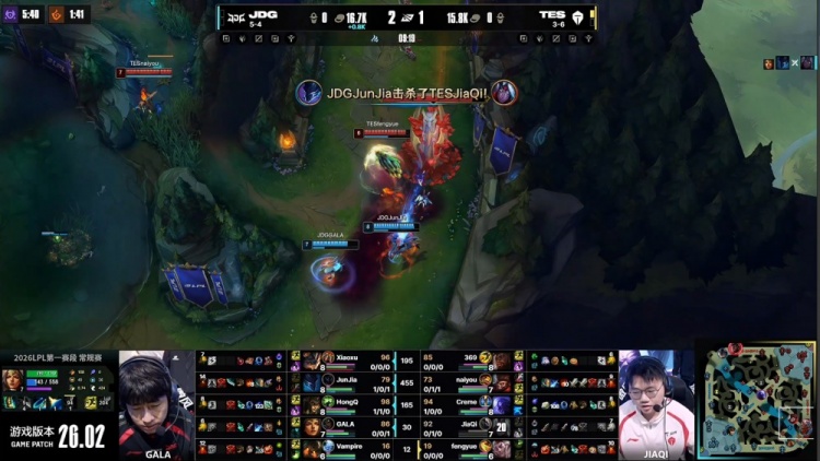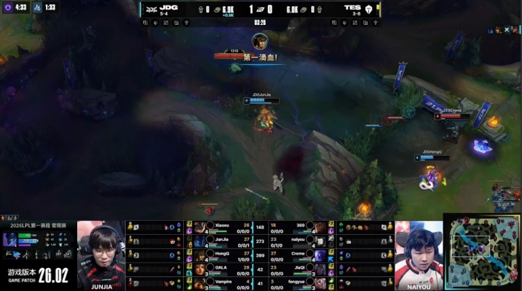 直播吧2月5日讯 2026LPL第一赛段组内赛继续进行,今日焦点之战由JDG对阵TES!