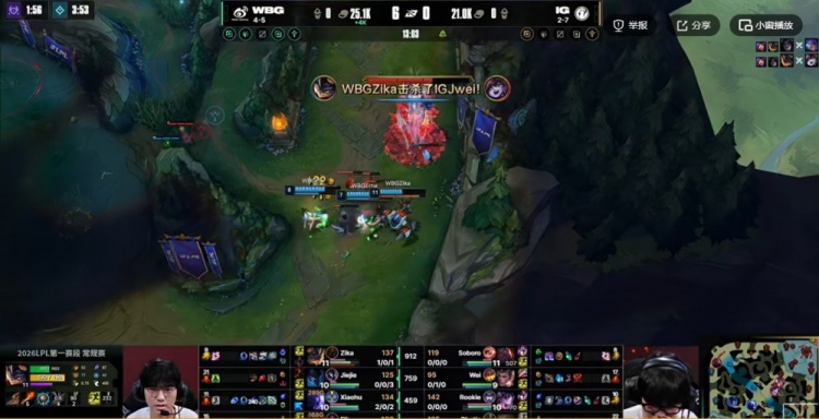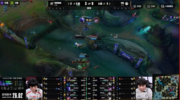 直播吧2月6日讯 2026年LPL第一赛段来到电竞春晚日,今天的首场比赛是iG对阵WBG!