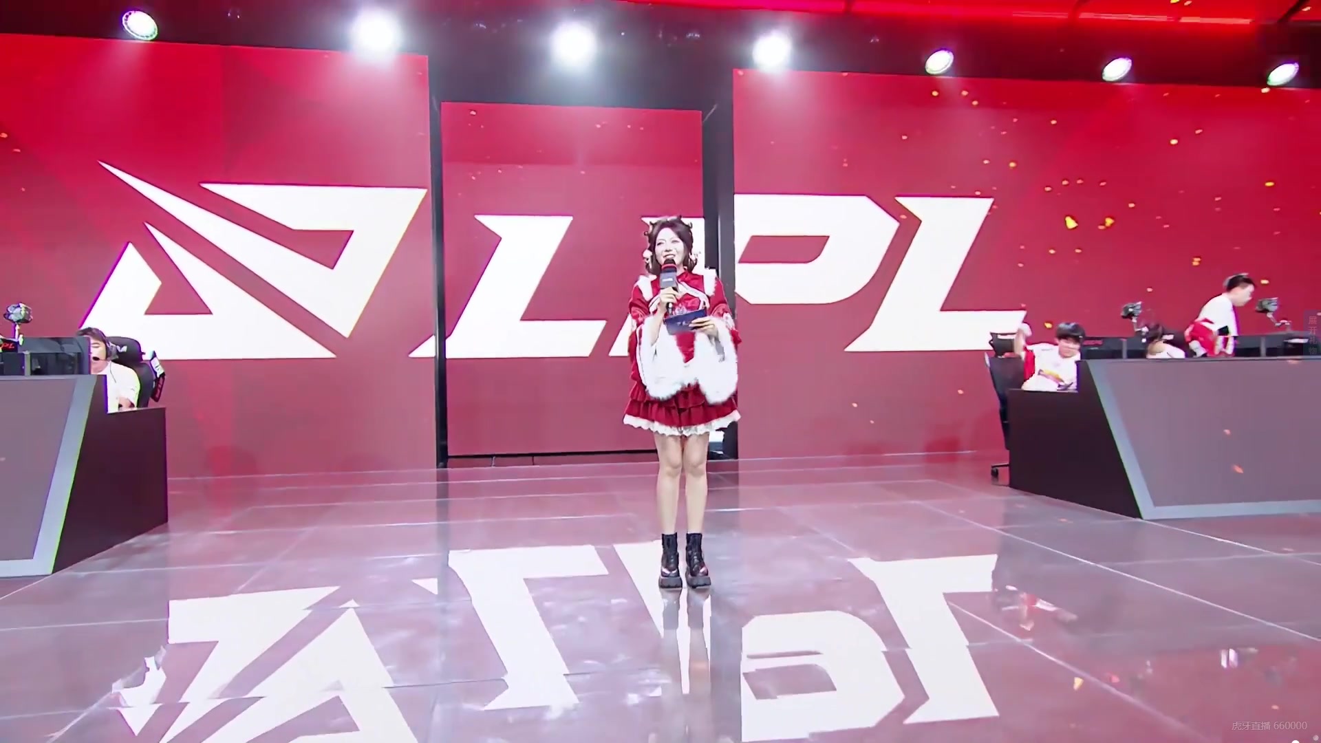 电竞春晚女主持人骆歆出场:喜庆红色+大白腿😍