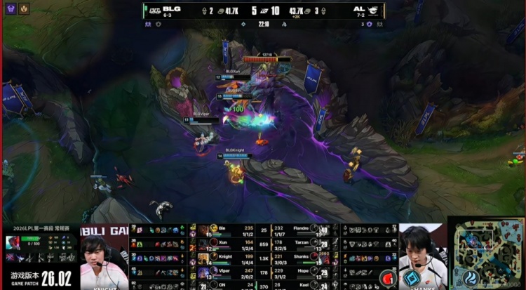 直播吧2月6日讯 2026年LPL第一赛段来到电竞春晚日,今天的第二场比赛是AL对阵BLG!