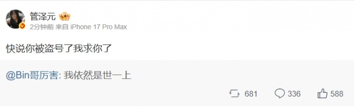 >官方解说也看不下去了?管泽元调侃Bin世一上言论:快说你被盗号了我求你了!!