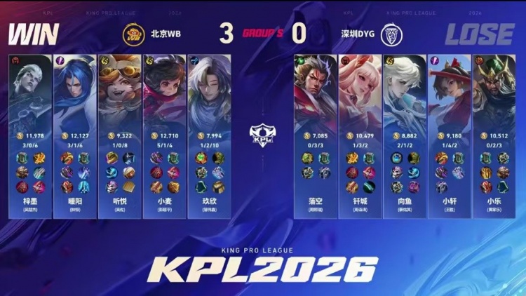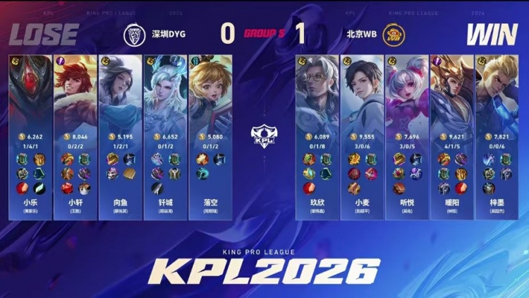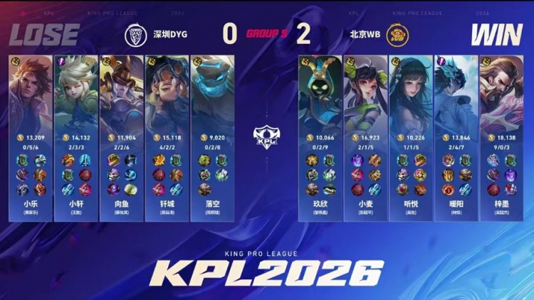 直播吧2月7日讯 2026KPL春季赛本场比赛是由北京WB对阵到深圳DYG!