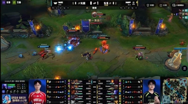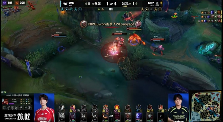 直播吧2月7日讯 2026年LPL第一赛段今天将迎来坚毅组的加赛,对阵的双方是NIP和WE!
