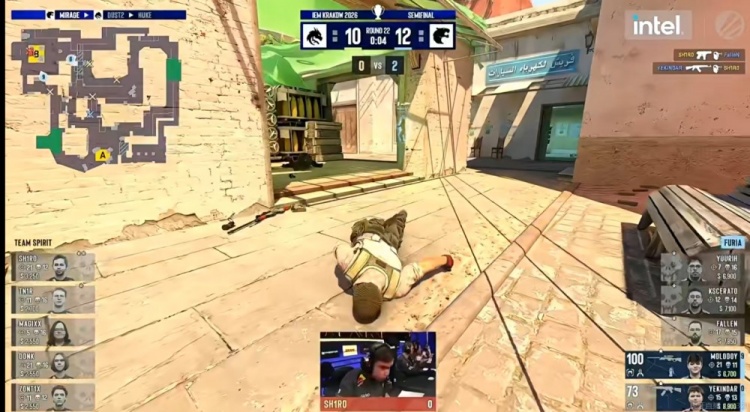 第十局Spirit选择刚到底,donk中路前摸被炸烟,KSCERATO拿到首杀!Spirit被迫强攻B区但是面对Furia的双狙配置还不了手啊!Furia拿到赛点!12-10!