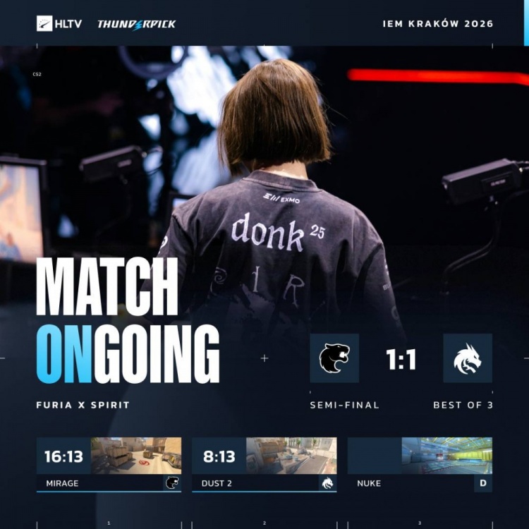 直播吧2月8日讯 CS2重点赛事IEM克拉科夫今天进行半决赛,首场比赛将会是Spirit绿龙对阵Furia黑豹!