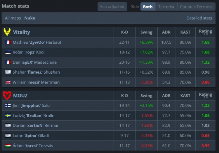 Vitality:mezii、apEX、ropz、flameZ、ZywOo