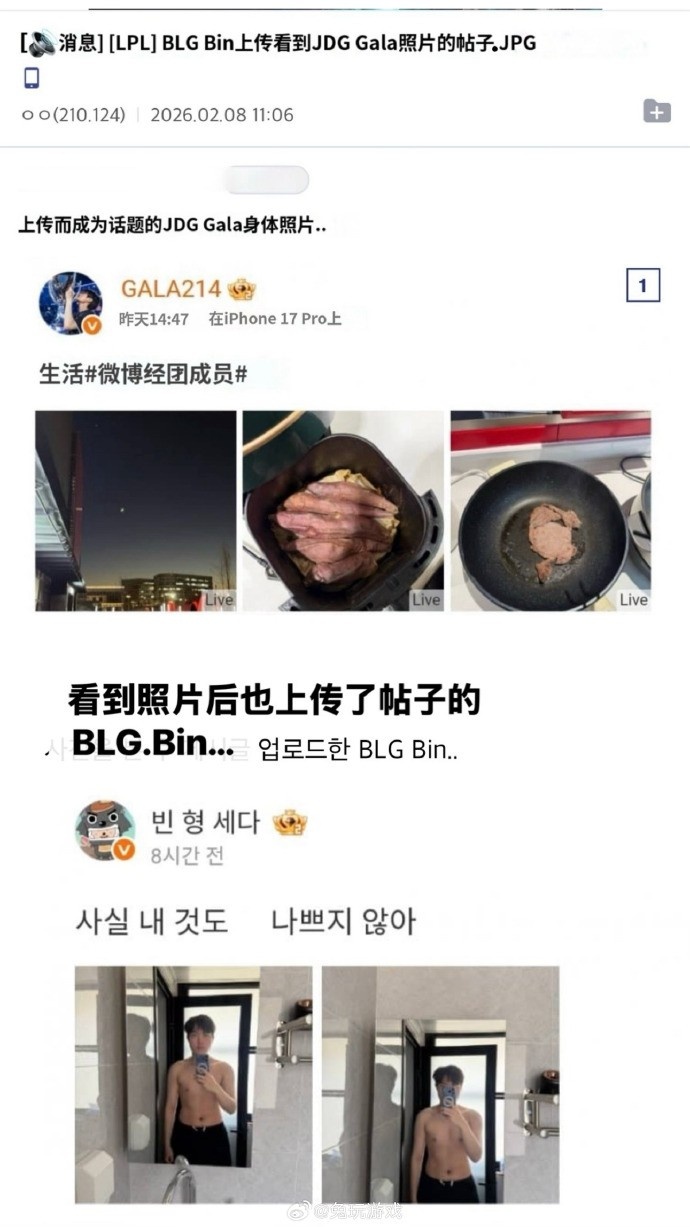 >韩网热议Bin哥晒腹肌照:上单Gumayusi!看着像ai但居然不是ai