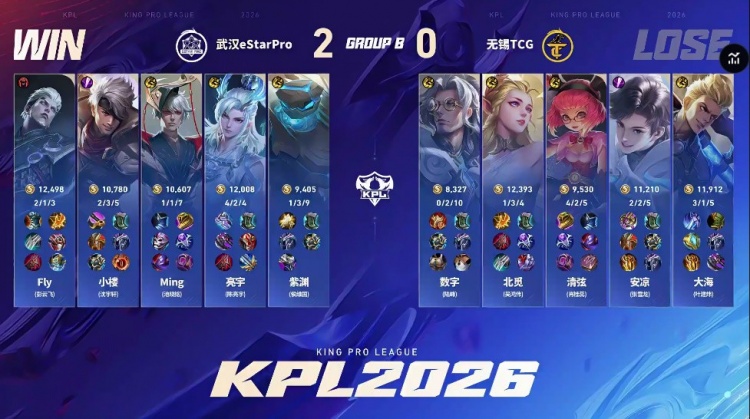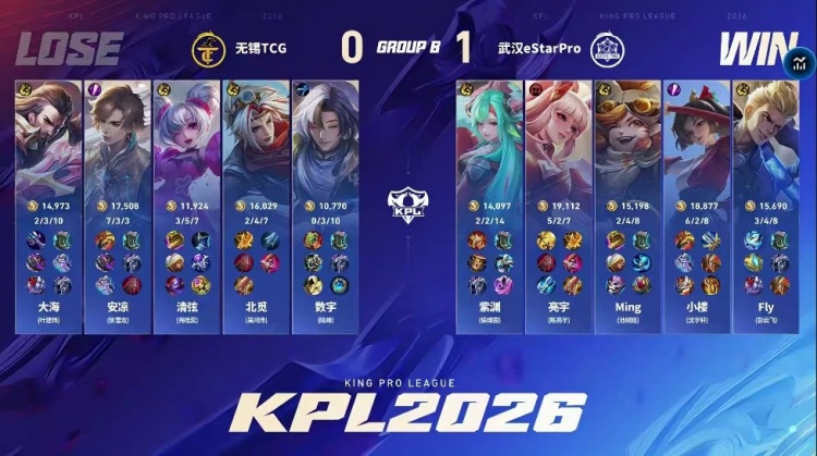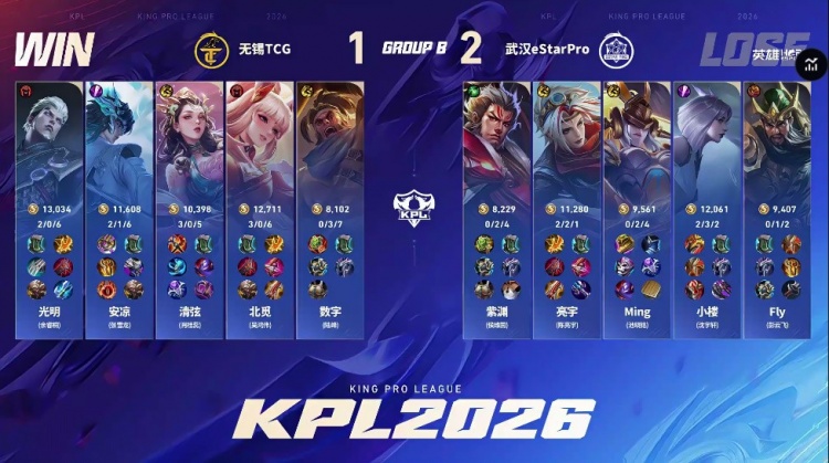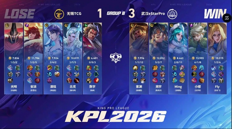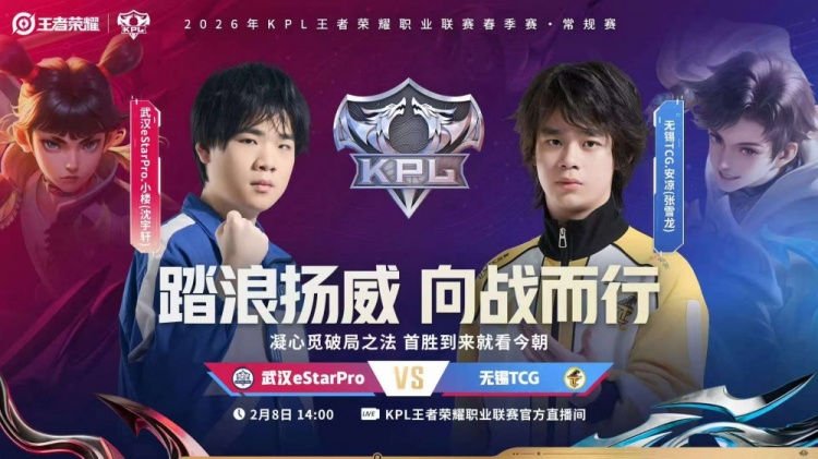 直播吧2月8日讯 2026KPL春季赛本场比赛是由武汉eStarPro对阵到无锡TCG!