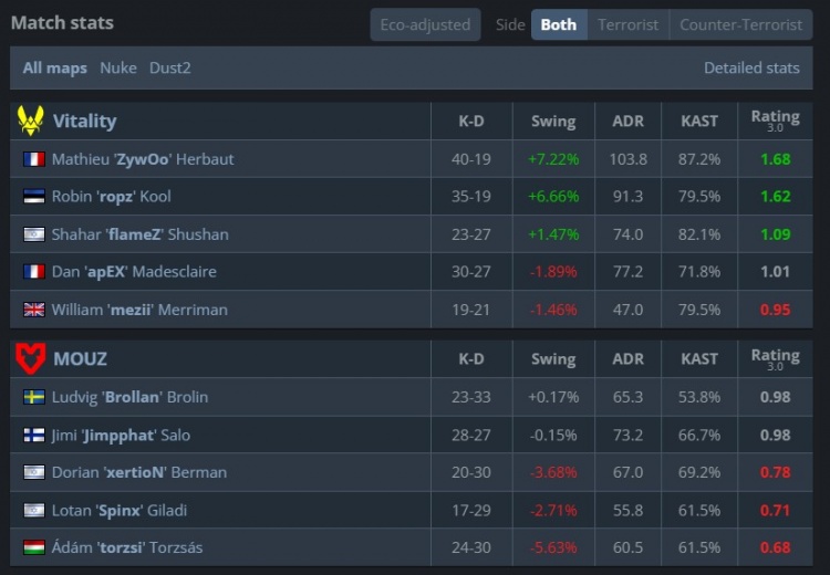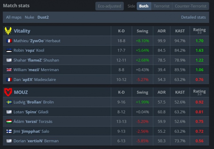 Vitality:mezii、apEX、ropz、flameZ、ZywOo