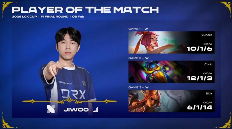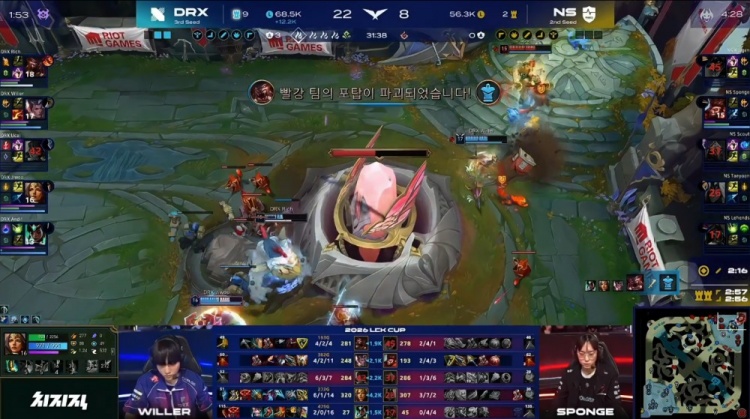 直播吧2月8日讯 2026LCK CUP季后赛入围赛最后一轮,DRX横扫淘汰NS,晋级季后赛!