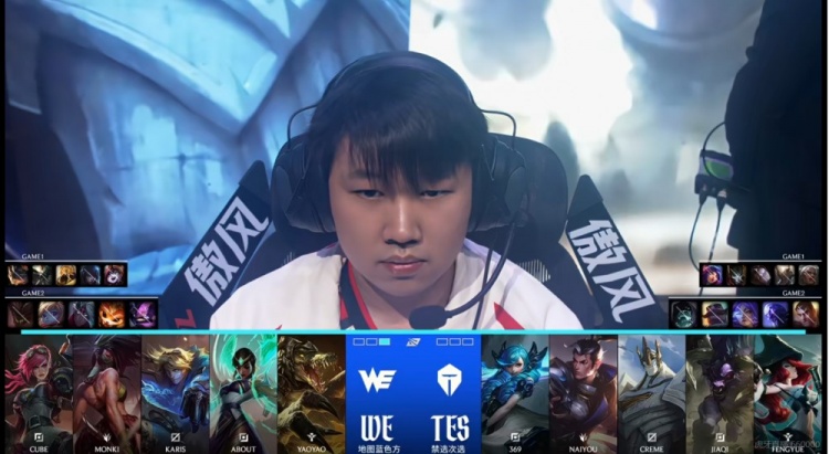 WE:上单Cube、打野Monki、中单Karis、下路About、辅助yaoyao