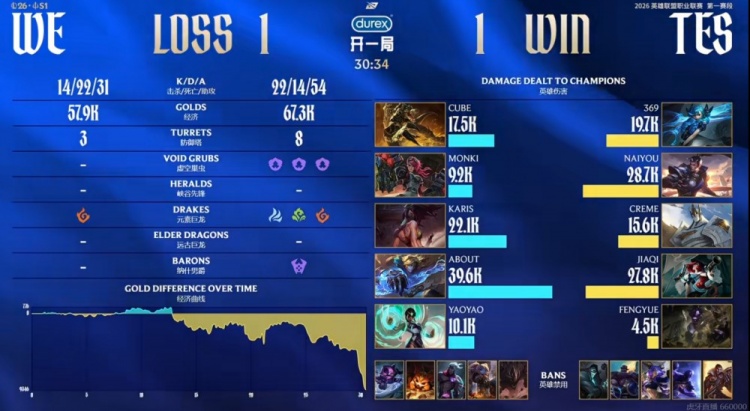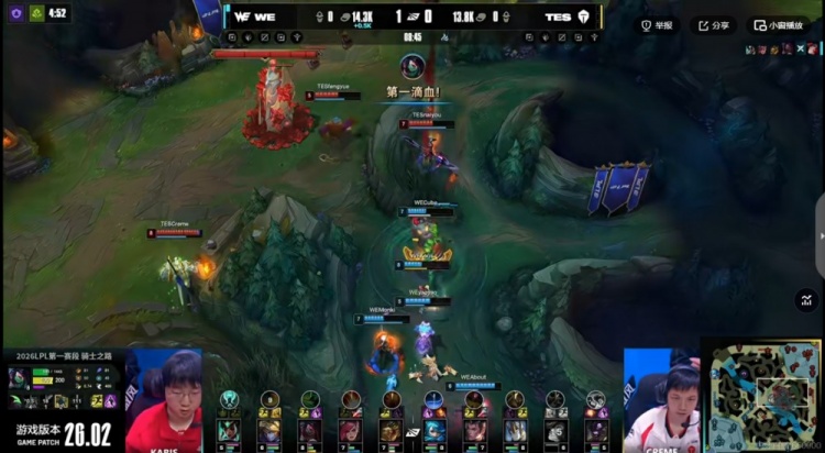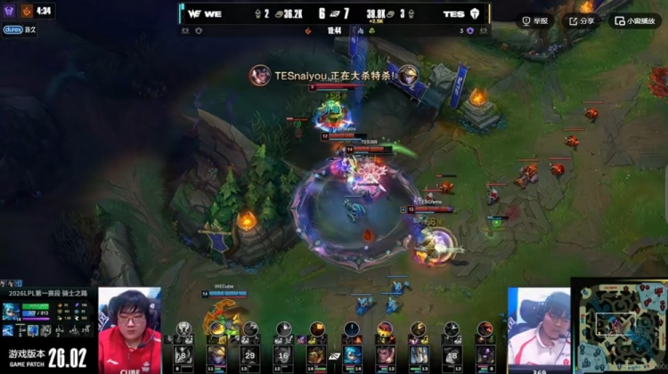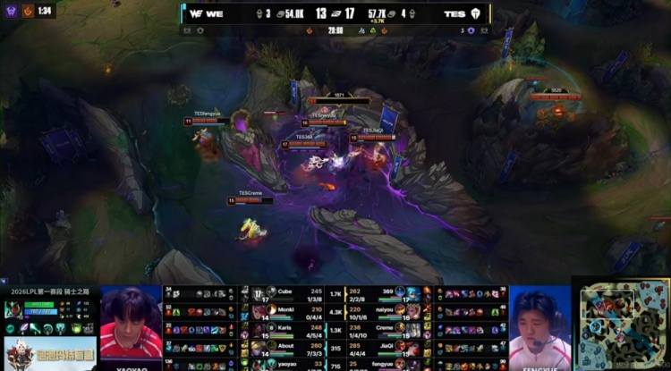 直播吧2月9日讯 2026年LPL第一赛段今天将迎来骑士之路的对决,今天首场是TES对阵WE!