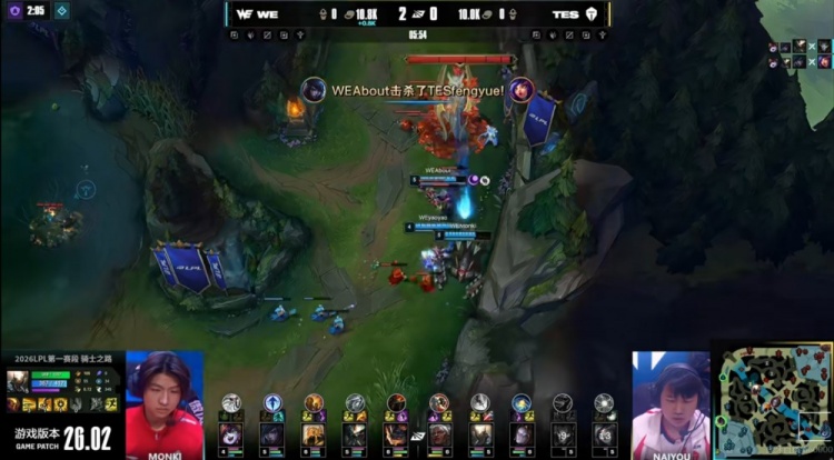 直播吧2月9日讯 2026年LPL第一赛段今天将迎来骑士之路的对决,今天首场是TES对阵WE!