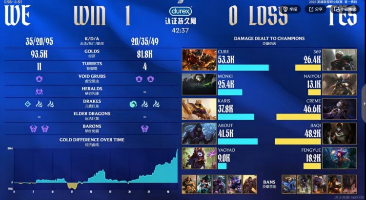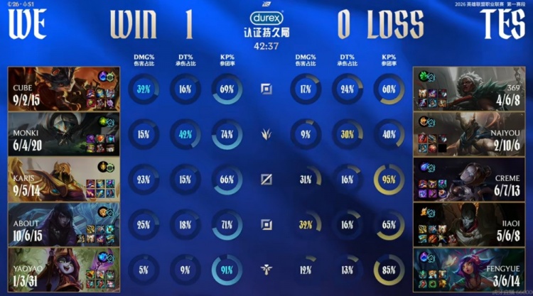 WE:上单Cube、打野Monki、中单Karis、下路About、辅助yaoyao