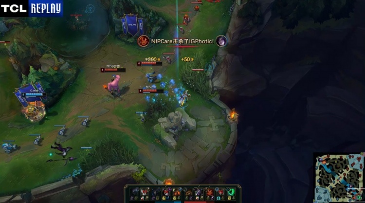 【6:18】下路3v3,Guwon蒙多先杀Wei赵信,Photic卡莎强行换掉Assum厄斐琉斯,Care岩雀来下收到Photic卡莎人头,NIP打出1换2。
