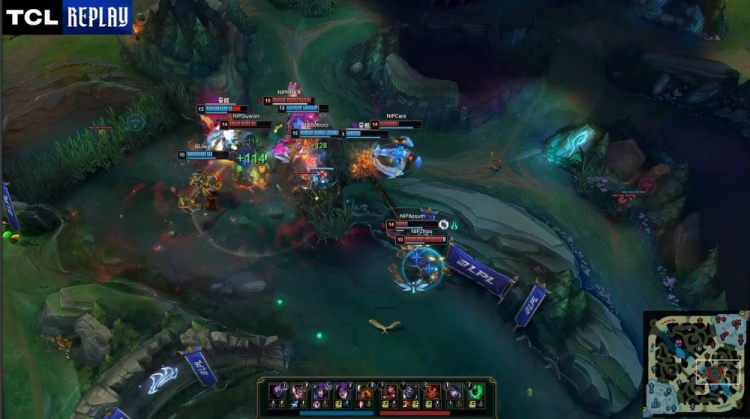 第三局前期上路2v2,Hoya纳尔先送出一血,Guwon蒙多随后反杀Soboro贾克斯。下路3v3Photic卡莎强换Assum厄斐琉斯,NIP打出1换2,双方经济持平。