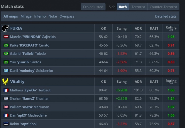FURIA:molodoy、yuurih、FalleN、KSCERATO、YEKINDAR