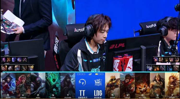 BP阶段:(第二局TT选择蓝色方,LNG则是先ban先选)
