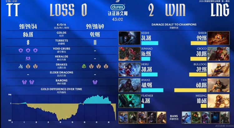 直播吧2月10日讯 2026年LPL第一赛段今天继续骑士之路的对决,首场比赛是TT对阵LNG!