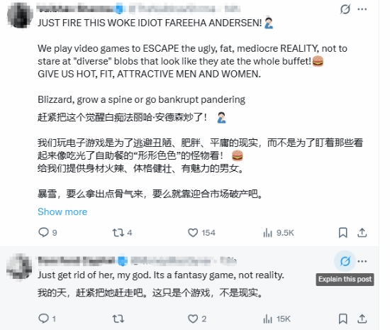 这一言论引发了网友的强烈批评,有网友留言回复到,“所有批评 “不切实际身材标准” 的人,都是在怨恨自己无法保持好身材。他们希望世界变得和自己一样难看,这样不用付出努力和自律就能觉得自己有魅力”。还有网友表示,“赶紧炒掉这个觉醒派白痴!我们玩电子游戏是为了逃离丑陋、肥胖、平庸的现实,不是为了看那些看起来吃光了整个自助餐的 “多元化”形象!给我们性感、健美、有吸引力的男性和女性角色。”“暴雪,有点骨气,不然靠讨好别人只会破产”。