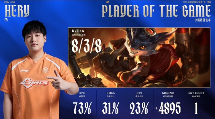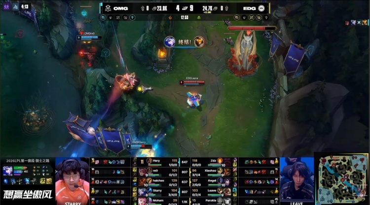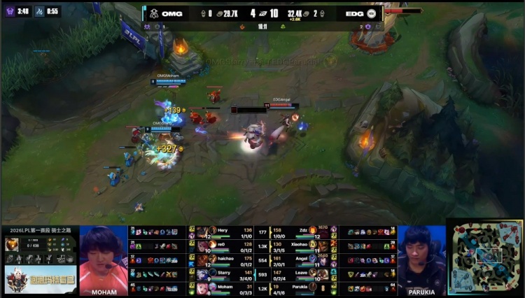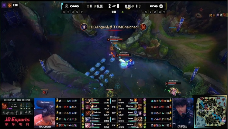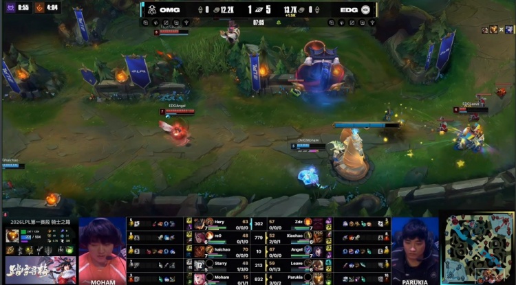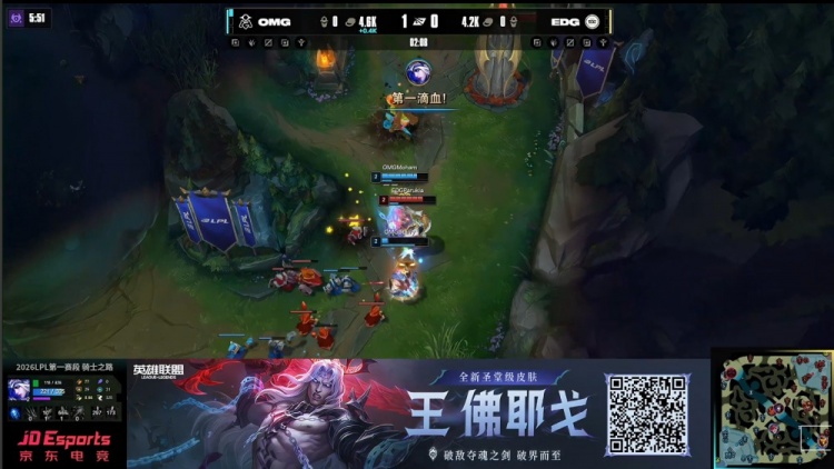 直播吧2月10日讯 2026LPL第一赛段骑士之路,今日第二场比赛由EDG对阵OMG!