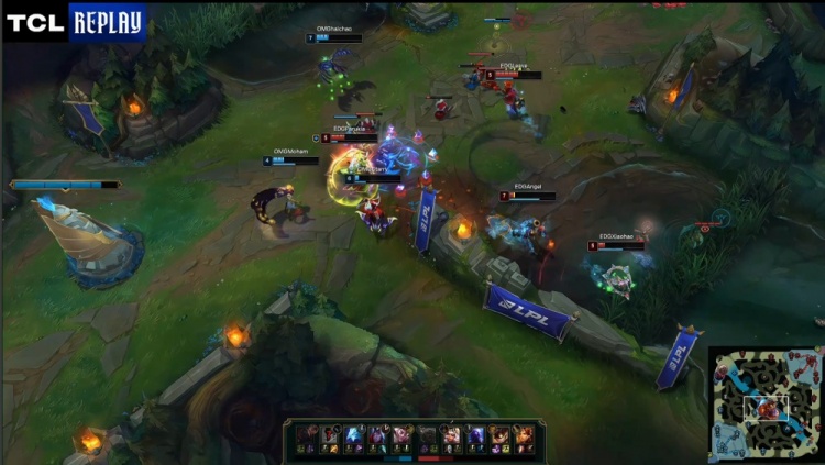 【6:52】小龙团,angel瑞兹开车绕后与xiaohao奇亚娜侧面进场,OMG众人残血,xiaohao奇亚娜逮捕re0梦魇,Leave吉格斯Q掉残血Moham洛人头,EDG打出0换3,经济领先2k。