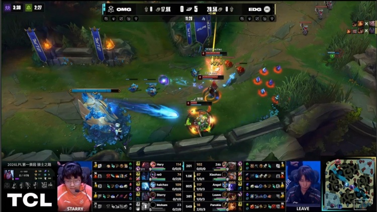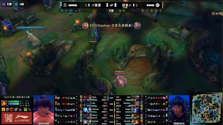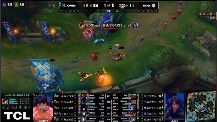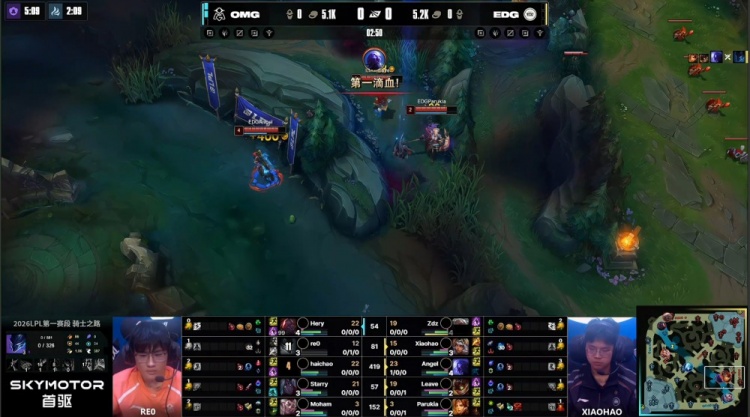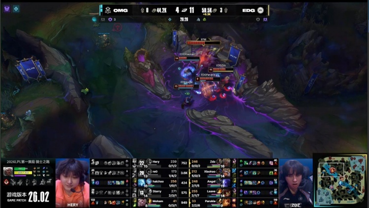 直播吧2月10日讯 2026LPL第一赛段骑士之路,今日第二场比赛由EDG对阵OMG!