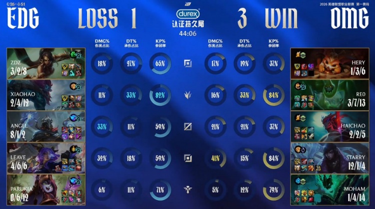 直播吧2月10日讯 2026LPL第一赛段骑士之路,今日第二场比赛OMG3-1战胜EDG,OMG将在明日对阵iG。