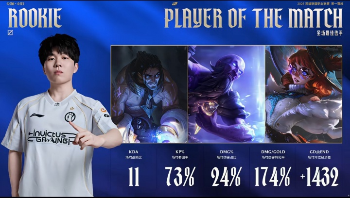 iG中单Rookie在三局比赛作用碾压Haichao,他也拿下本场Bo5的全场最佳选手。Rookie三局总战绩15-4-29。