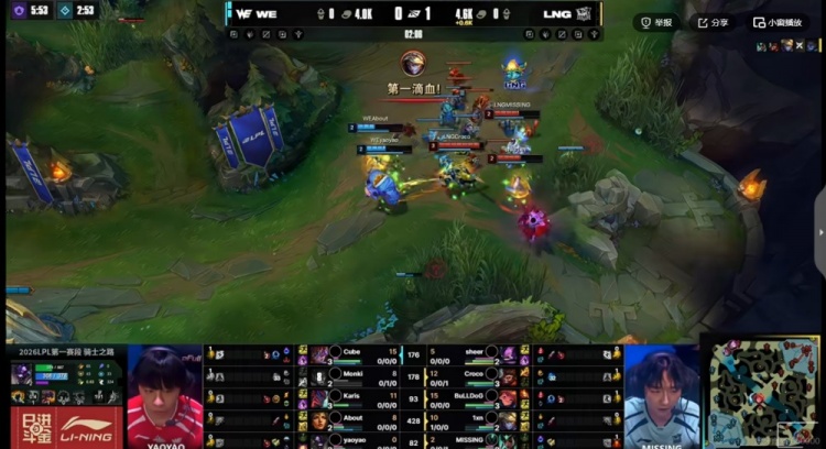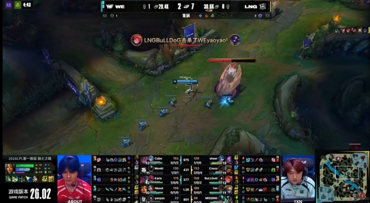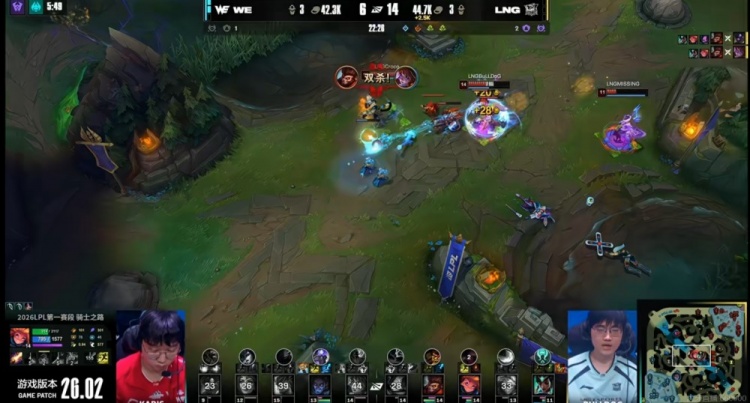 直播吧2月11日讯 2026年LPL第一赛段来到骑士之路的最后一天,第二场比赛将是WE对阵LNG!