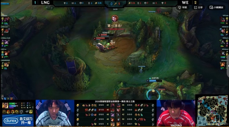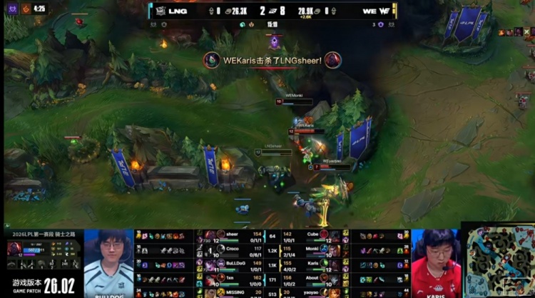 直播吧2月11日讯 2026年LPL第一赛段来到骑士之路的最后一天,第二场比赛将是WE对阵LNG!