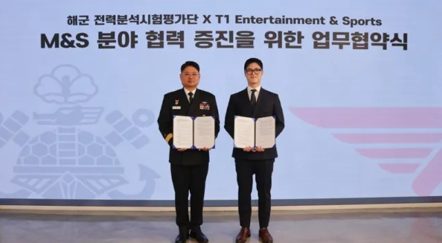 此次协议签署仪式于昨日(12日)在位于首尔特别市江南区的T1总部大楼举行。协议旨在应对数字化作战环境,强化海军的认知、指挥控制、分析建模及模拟(M&S)能力,并将电子竞技及游戏领域的创意技术与数据相结合,谋求两家机构的共同发展。