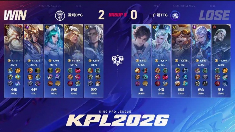 直播吧2月13日讯 2026KPL春季赛本场比赛是由广州TTG对阵到深圳DYG!