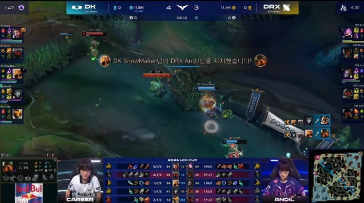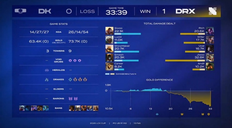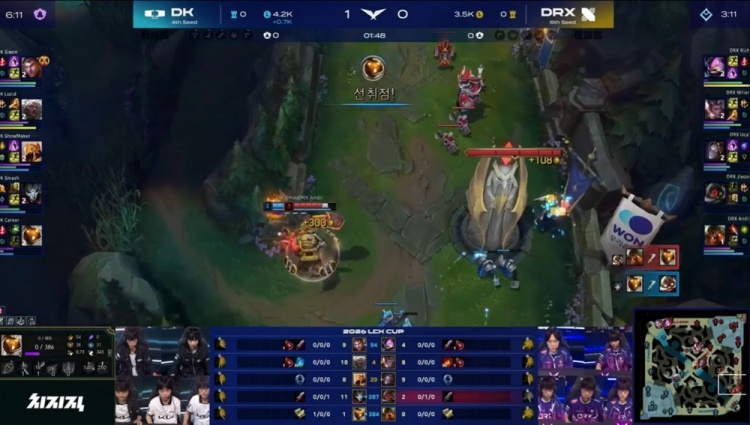 直播吧2月13日讯 2026LCK Cup季后赛继续进行,由DK对阵DRX!