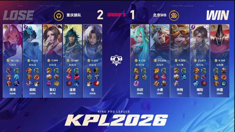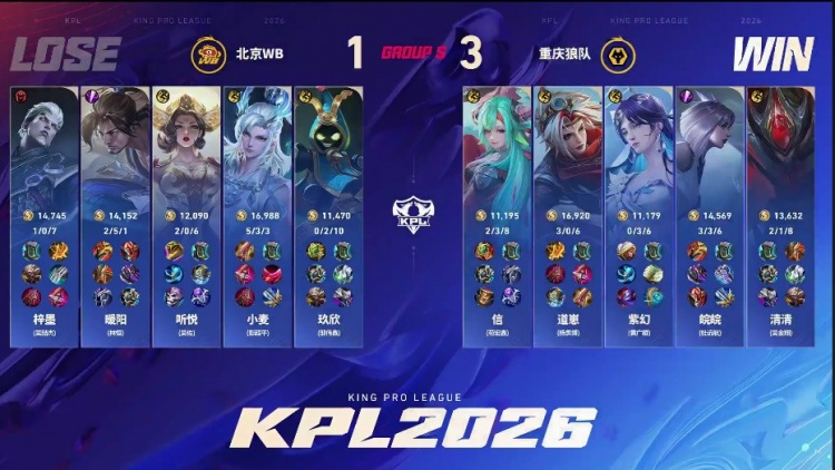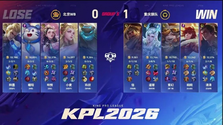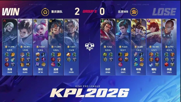 直播吧2月13日讯 2026KPL春季赛本场比赛是由北京WB对阵到重庆狼队!