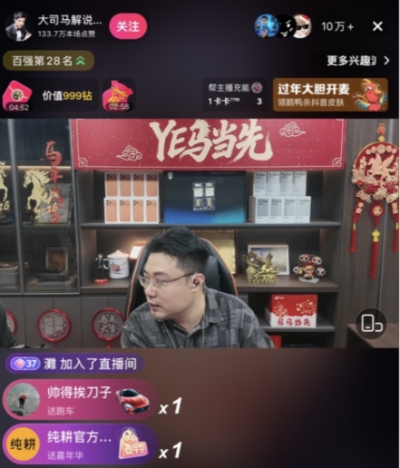 直播吧2月13日讯 今日著名主播大司马在抖音首秀,开播人气轻松突破十万。